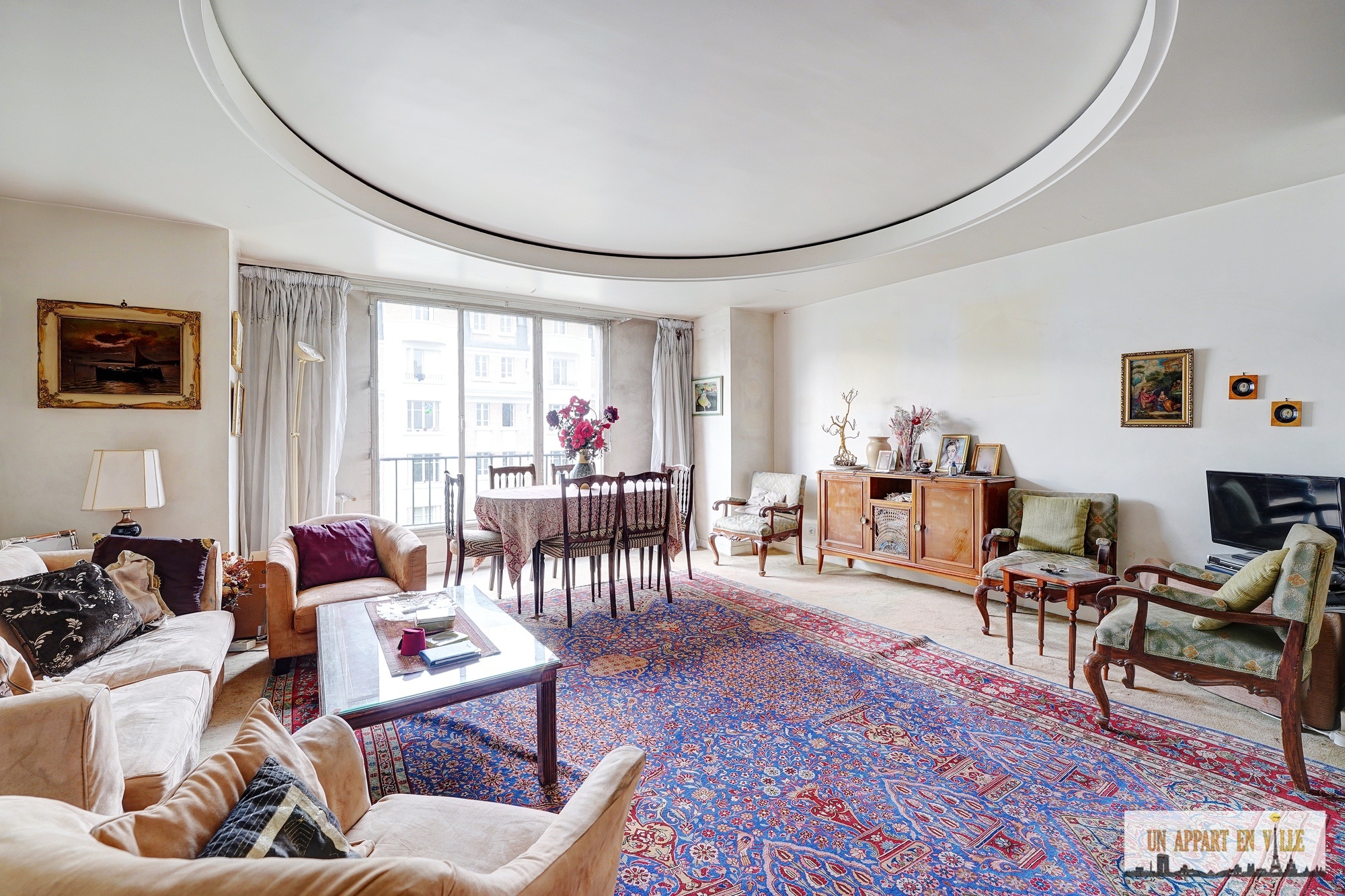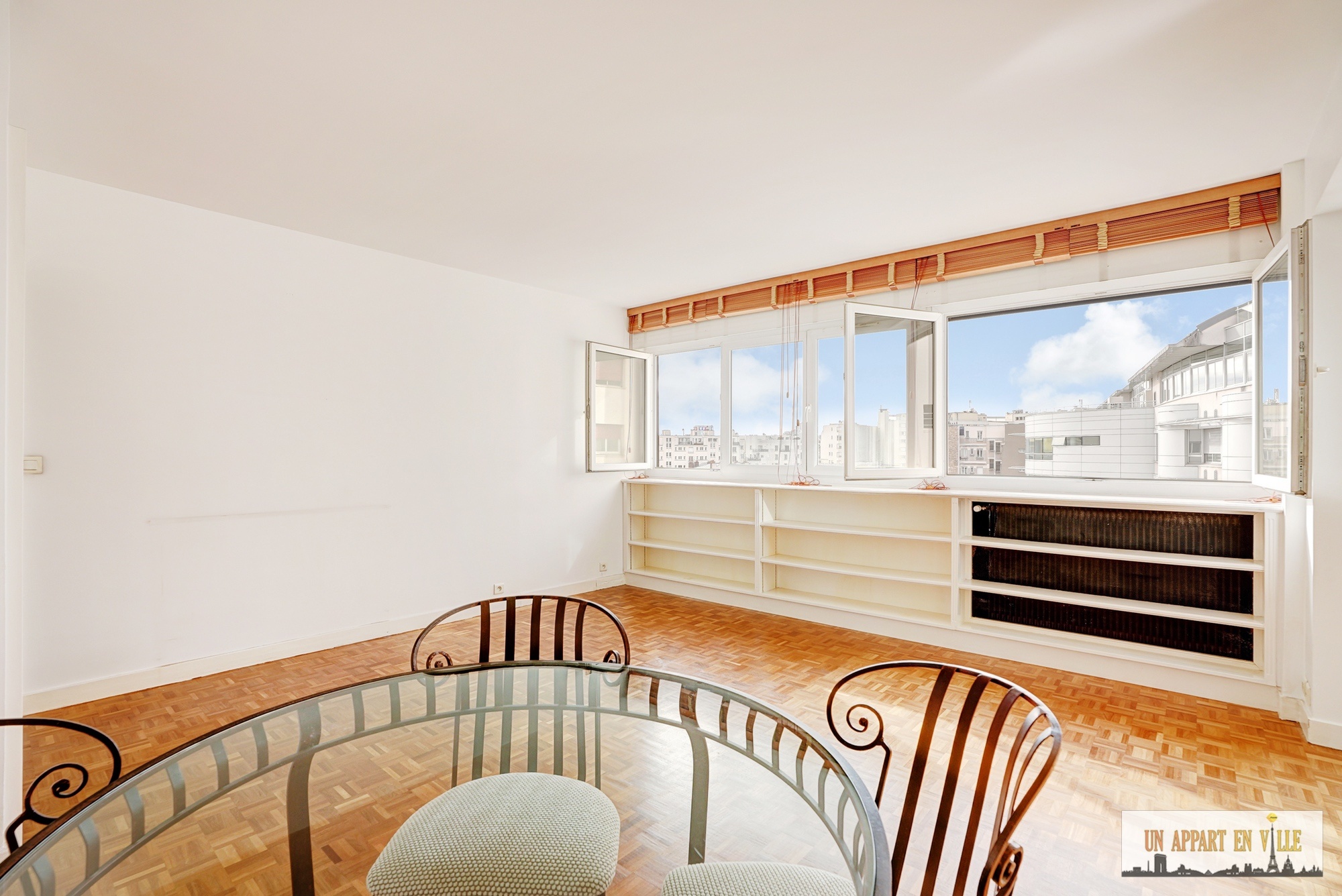 Avenue de Versailles - Dans immeuble 1970 - Appartement au 7ème étage sans vis à vis, vue dégagée sur Paris. Entrée, séjour avec grande baie vitrée exposition Sud-Est, 2 chambres, cuisine séparée avec office, une salle d'eau, une salle de bain, WC séparés. Chauffage et eau chaude collectifs . Gardienne
