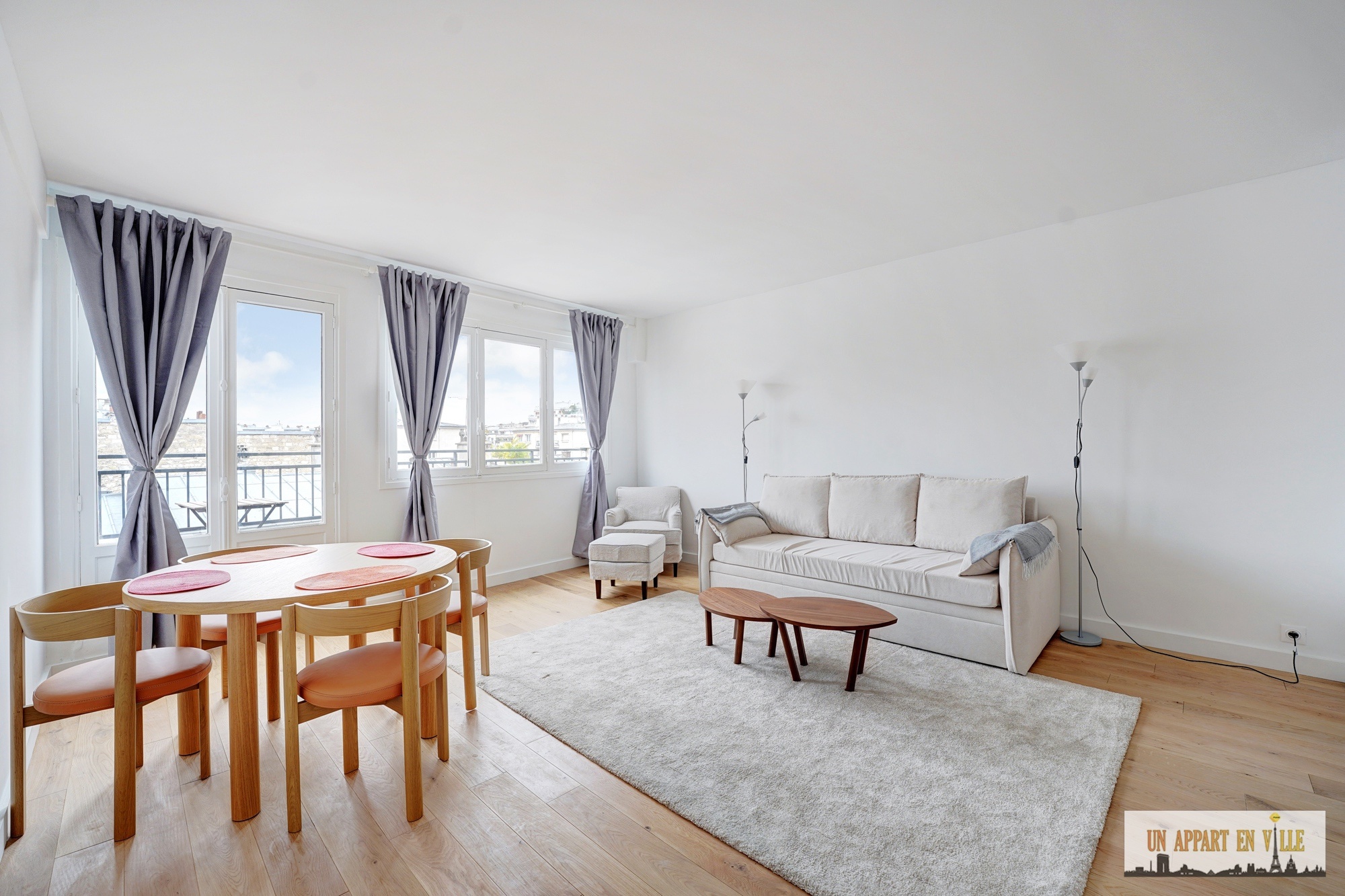 Dans immeuble récent, appartement entièrement rénové, meublé neuf, prestations de qualité, très lumineux sans vis à vis, séjour sur rue très calme avec balcon et vue sur les toits, cuisine séparée, chambre sur cour, salle d'eau, WC séparés.