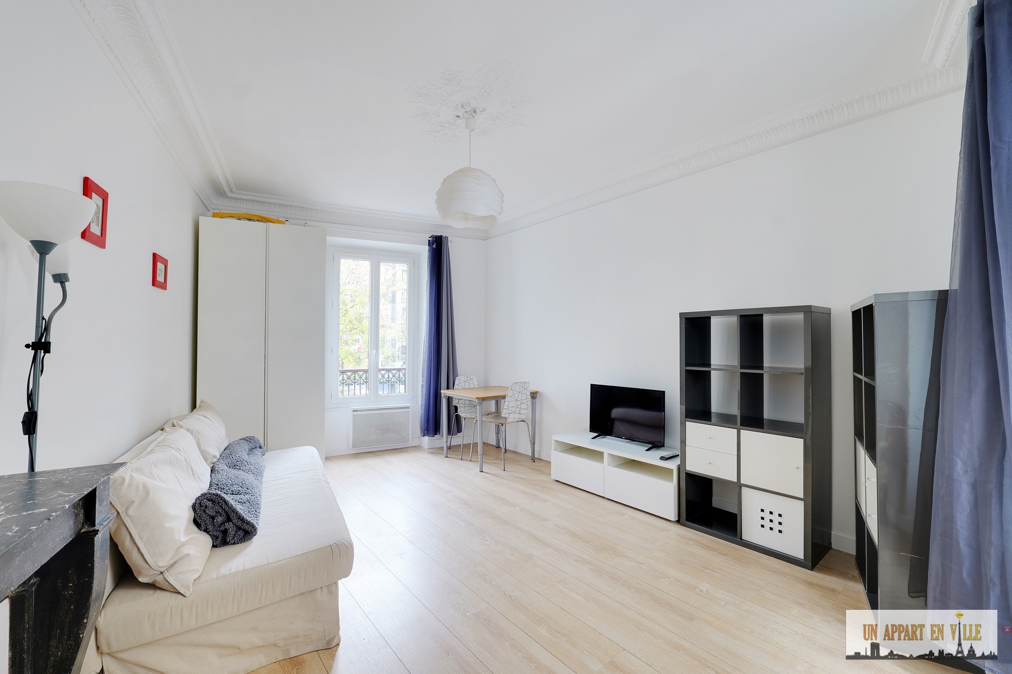 Dans copropriété de standing 1969, studio bien organisé donnant sur rue calme, pièce principale avec balcon de 5,5 m² , kitchenette, salle d'eau avec WC, penderie.