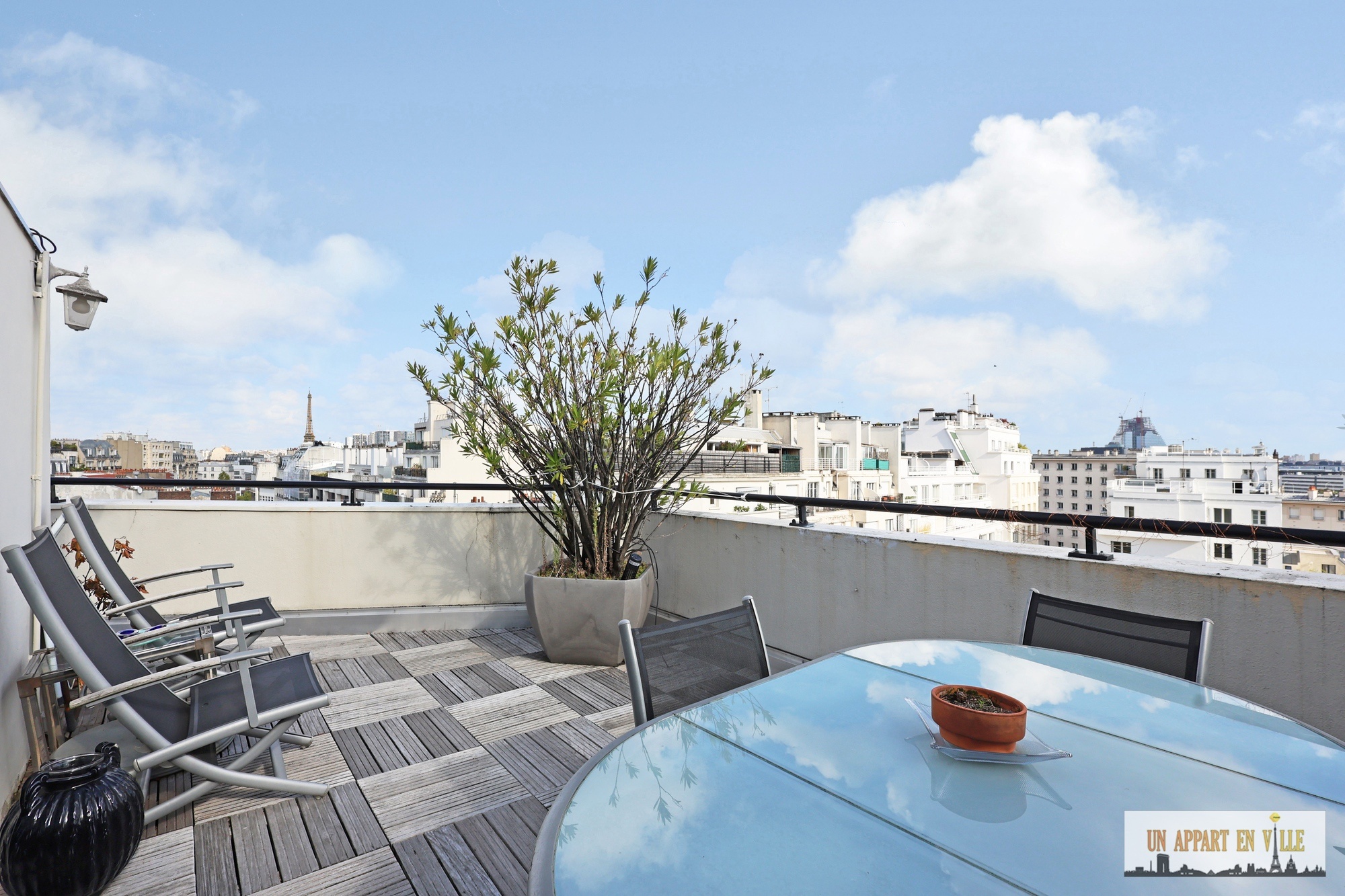 Appartement sans vis à vis, très lumineux avec terrasse de 42,26 m² : Entrée avec nombreux placards, grand salon de 26 m² avec grandes baies vitrées sur balcon/terrasse, vue Tour Eiffel et Mont Valérien, 2 chambres avec accès direct balcon/terrasse, cuisine séparée, salle d'eau avec WC, WC séparé avec lave-main. Belles prestations et aménagements de qualité. Cave et gardienne. Transports (métro et bus), commerces et marché à proximité immédiate.
